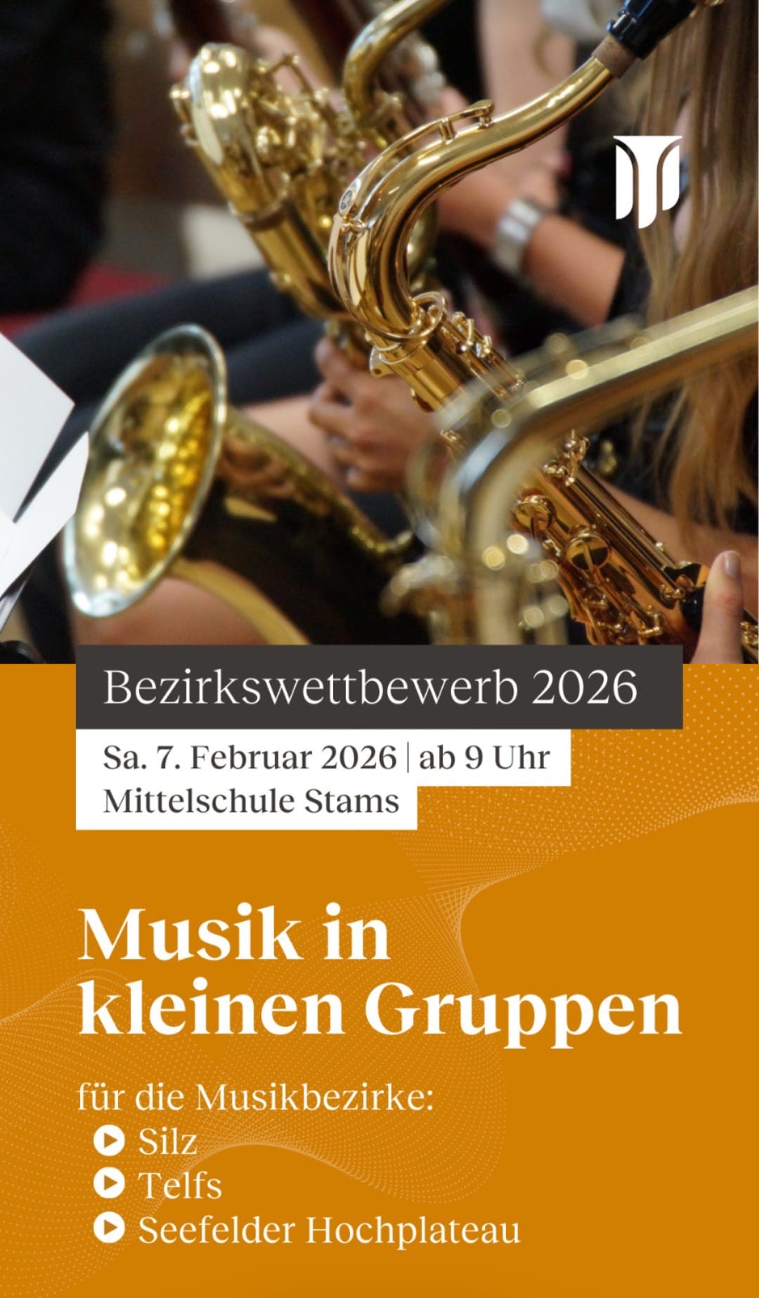 Am Samstag, den 7. Februar, ist es wieder so weit: Der Wettbewerb Musik in kleinen Gruppen findet statt. Die Musikkapelle Huben nimmt mit vier musikinterne Gruppen an diesem Wettbewerb teil. Golden Five: David Klotz, Isabella Grüner, Sophia Klotz, Melanie Santer und Sarah Klotz Huebar Tenorhorn-Trio: Jonas Klotz, Simon Kuhn und Simon Klotz Sax‘n Brass Huben: Daniel Klotz, Alena Klotz, Thomas Fiegl, Fabian Wilhelm, Isaac Brüggler und Werner Klotz Low Brass Huben: Roman Jennewein, Ferdinand Klotz, Thomas Schöpf und Gerold Brüggler Bereits am Sonntag konnten die Gruppen ihr Programm beim Benefizkonzert unter Beweis stellen. Für den Wettbewerb am Samstag wünschen wir allen Teilnehmerinnen und Teilnehmern viel Glück und gutes Gelingen.
